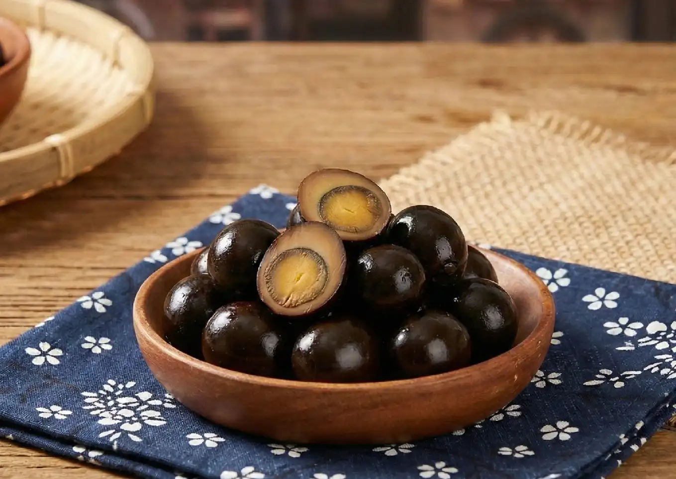 滷蛋反覆回滷變小又黑,口感Q彈、蛋香濃郁。用雞蛋或鵪鶉蛋古法滷製,加醬油、冰糖與香料入味,真空包裝好保存,是來淡水必買伴手禮。